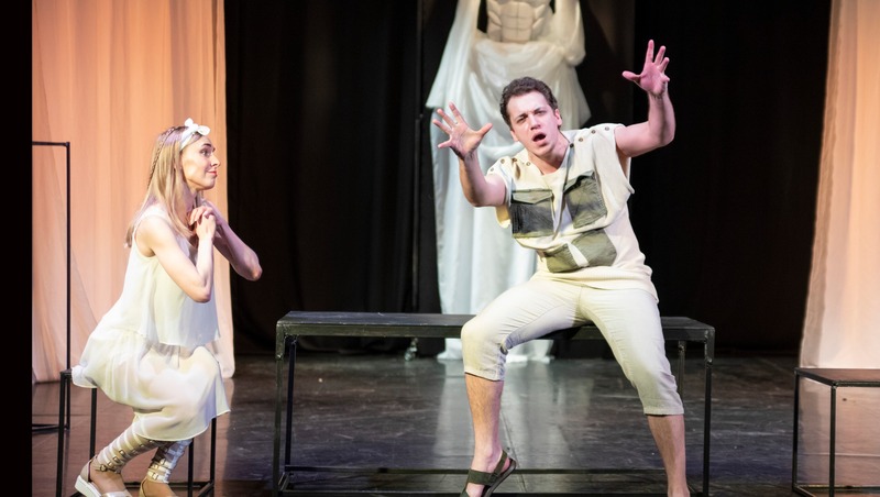 В основе спектакля — история, восходящая к античной мифологии и комедии Мольера. Зевс перевоплощается в Амфитриона ради встречи с Алкменой. Гера, в свою очередь, принимает облик Алкмены, чтобы помешать планам мужа.